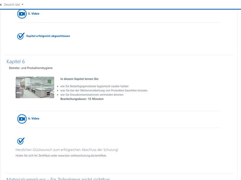 Nach erfolgreichem Abschluss Ihrer Schulung wird das Zertifikat erstellt und kann nach einigen Minuten unter bav-onlineschulung.de/zertifikat heruntergeladen werden. Bitte halten Sie Ihren individuellen Benutzernamen und das Passwort der Schulung bereit. Das Zertifikat befindet sich in Ihrer Schulungsverwaltung im Account und bleibt dort dauerhaft gespeichert.
