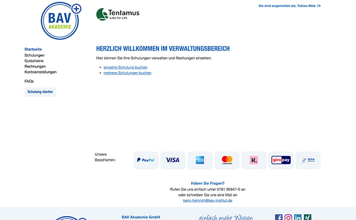 Für die nachfolgende Buchung von Schulungen verwenden Sie bitte Ihr „Konto“.